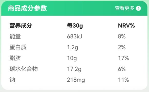 某品牌薯片的营养成分表(图源:电商平台商品详情页)