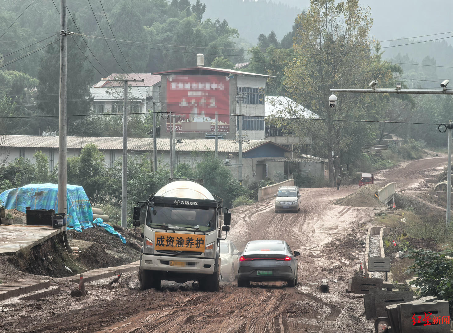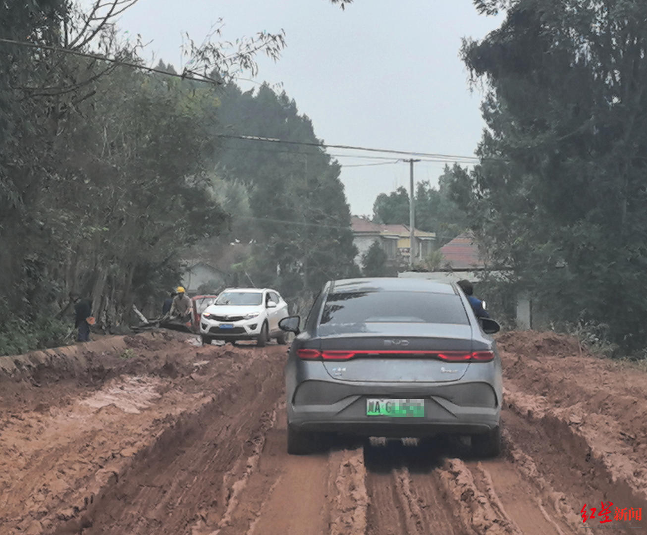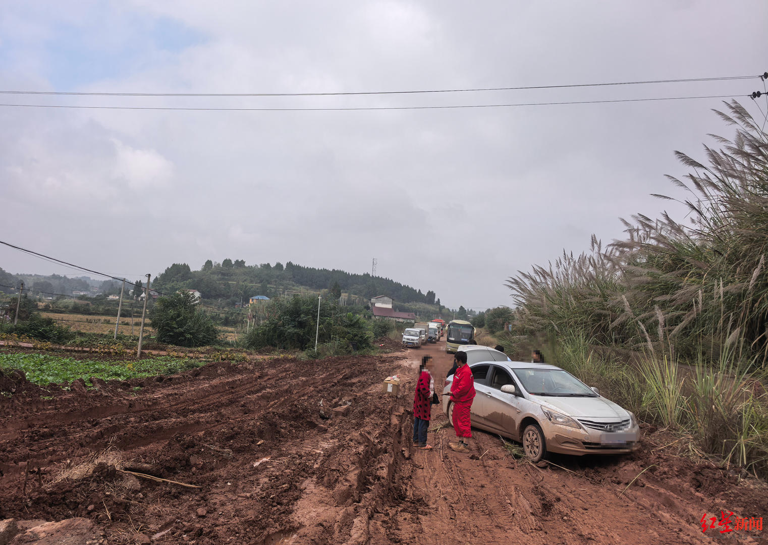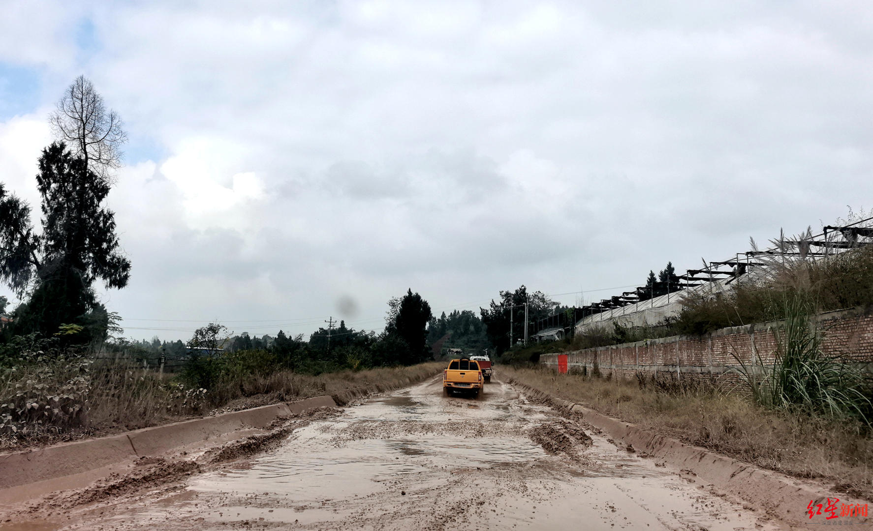 除通旅镇场镇至成资渝高速通旅收费站的近2公里路段已建好外,改建工程其余路段的路面大多只铺设了基础层,相对平整。但因近期雨水较多,路面泥泞不堪,部分路段坑洼不平,还有不少积水。此外,部分路面隆起泥埂,有的司机驾车经过时担心底盘被刮,只能车轮压在泥埂上缓慢前行。