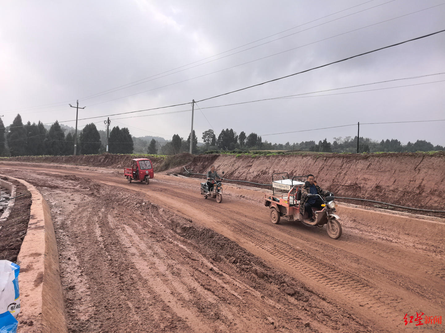 沿线村民介绍,这条路原来是柏油路面,路面宽5.5米。“原来虽然窄一点,但平时车来车往和走路都不受影响。”石湍镇毛家坪村的刘婆婆说,这条路于2023年夏天动工,原来说去年10月便可修好,但至今两年多仍不见完工。她家距石湍镇场镇约3公里,孙儿每天上学都要走这条路。“真的是‘晴天一身灰,雨天一身泥’,路太难走,我都有半年多时间没去赶集了。”