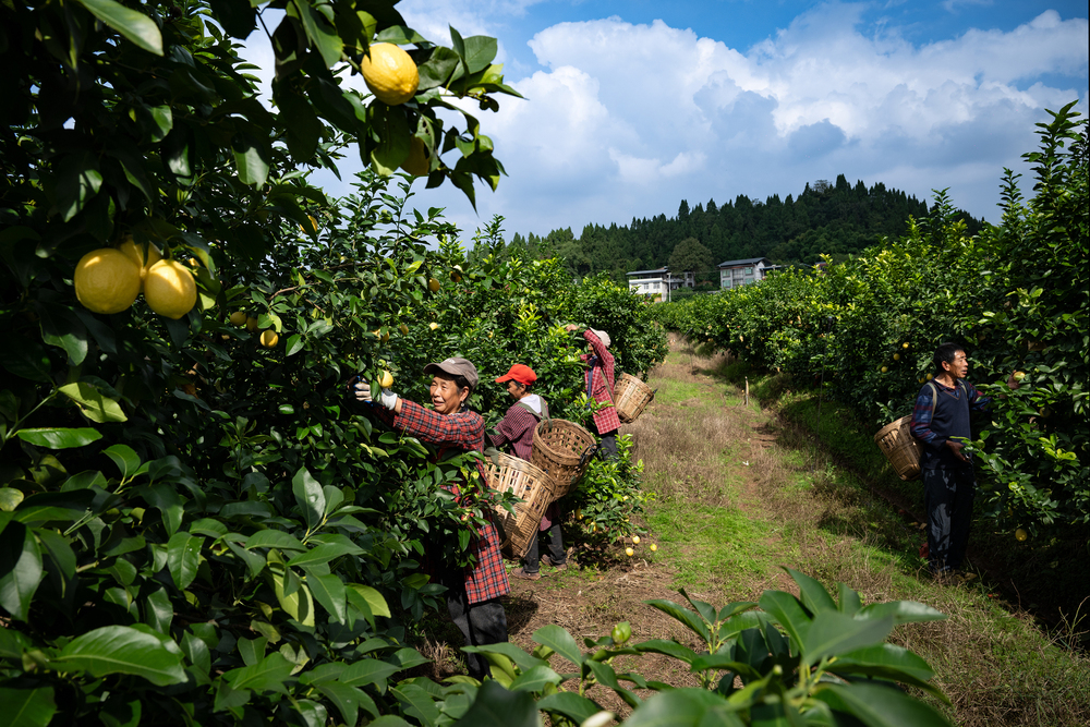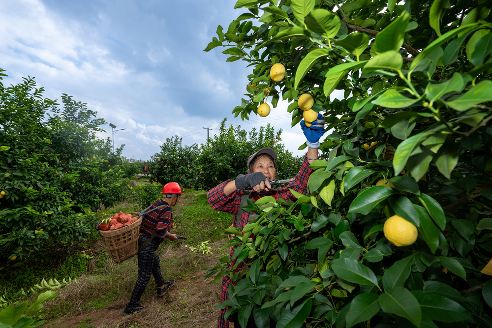 11月4日,秋季的天空雨后初晴,潼南区32万亩柠檬进入采收旺季。在潼南区柏梓镇羊堡村,空气中弥漫着清新的果香。阳光中,果农们穿梭在果林间忙着采摘和装车。