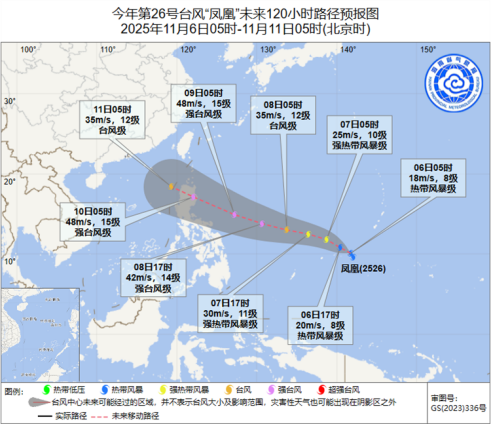 △“凤凰”11月6日05时预报路径图