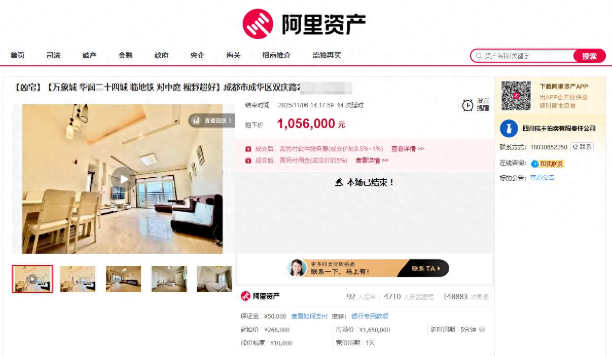 11月5日,邻近成都万象城商圈的一处住宅线上拍卖。这处位于成华区双庆路某小区住宅标明为凶宅。