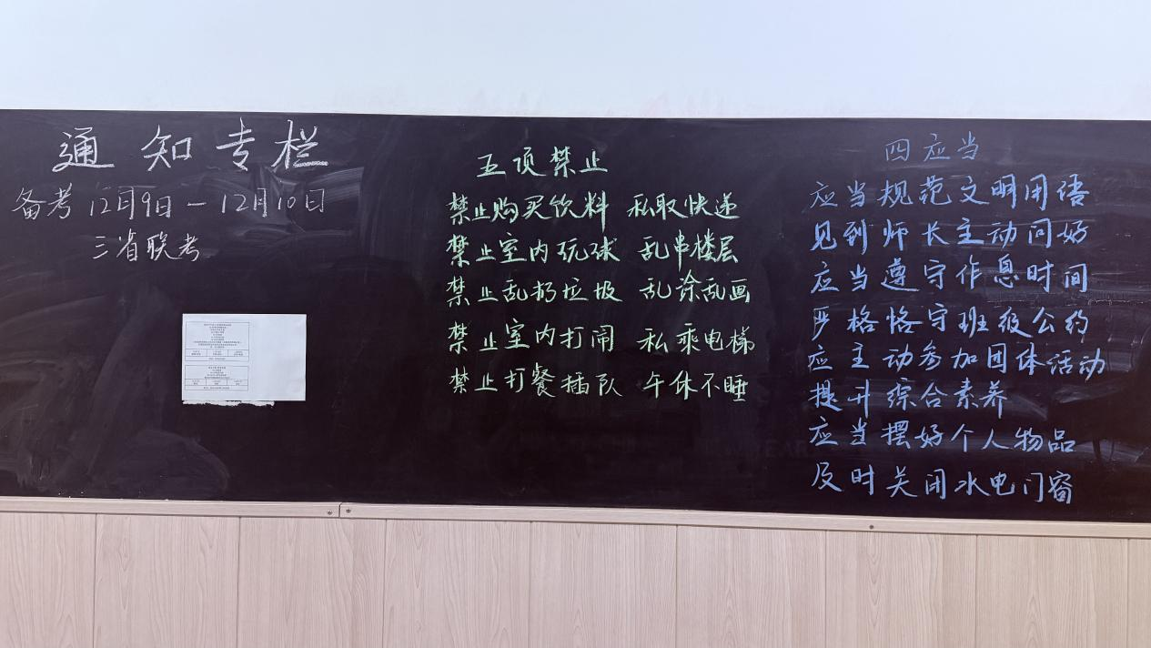 学校多层公告栏里的“五项禁止”里提到“禁止购买饮料”(央广网记者白德彰 摄)