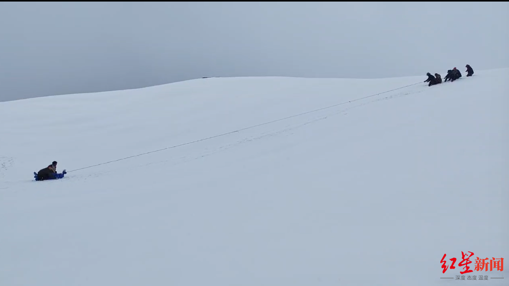 ▲2024年,驴友徒步贡嘎山遇难,救援人员跪地转运遗体下山