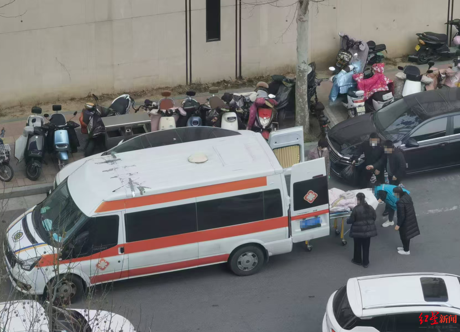 红星新闻记者联系了一辆救护车,几分钟后,“豫R”车号的救护车就停在了医院门口。