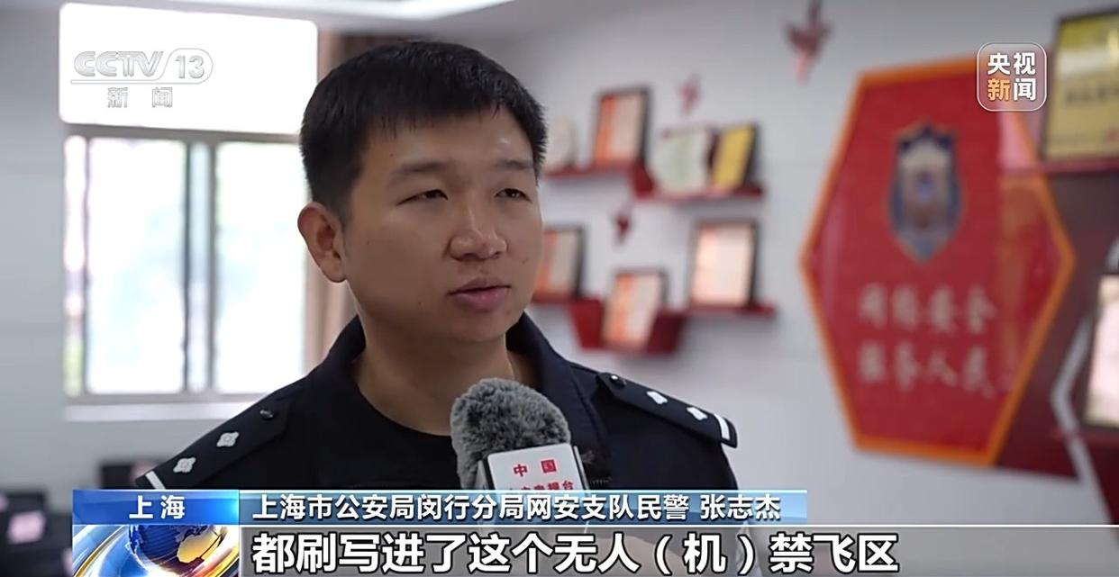 上海市公安局闵行分局网安支队民警 张志杰:因为正常的厂商出产的这个无人机,它的内部固件中都刷写进了这个无人机禁飞区和限高的限制。当飞机飞到禁飞区的边缘,或者说到达一定的限高,比如说120米的时候,这个无人机就会开始提示无法进行进一步飞行,它会在这个禁飞区的边缘进行悬停,然后,你只能进行倒退的操作。但是,当他进行了这个无人机禁飞区和限高的破解以后,它就可以在这些禁飞区中,还有包括超过限高的这个高度进行自由飞行。