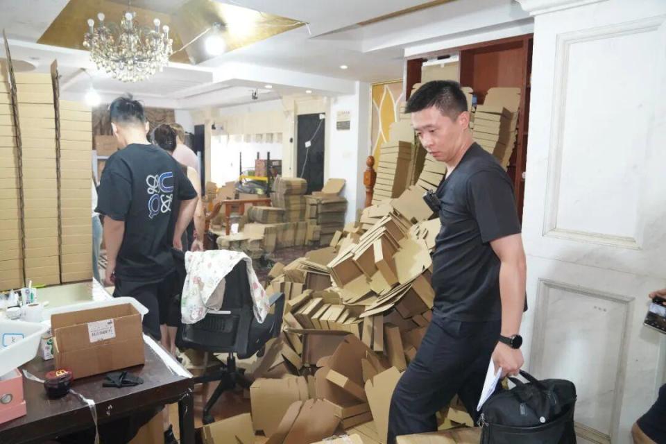 接到求助后,警方随即展开调查发现,这些假冒首饰的发货地址虽分散在不同地点,但最终的退货收件地址却指向沪太公路某工业园区的一间仓库,仓库内每天有多名人员在分拣、打包。更巧的是,这些“工作人员”频繁进出1公里外的顾北路某小区。经过进一步侦查,警方掌握了以沈某、薛某夫妇为首的5名团队核心人员,并确定该团伙落地的窝点地址为该小区的某栋别墅内。