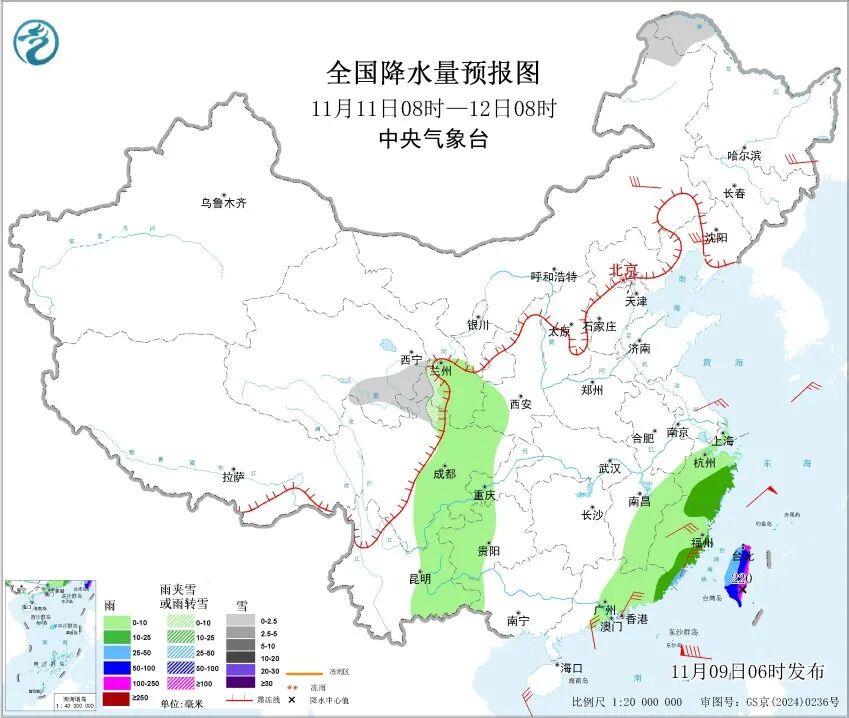 另外,未来三天,青海东部和南部、西藏东北部、川西高原北部、甘肃南部等地的部分地区有小到中雪或雨夹雪,局地大雪,新增积雪深度1至3厘米,山区局地可达6厘米以上;江南北部、西南地区南部、重庆东南部、贵州东北部等地的部分地区有中到大雨。