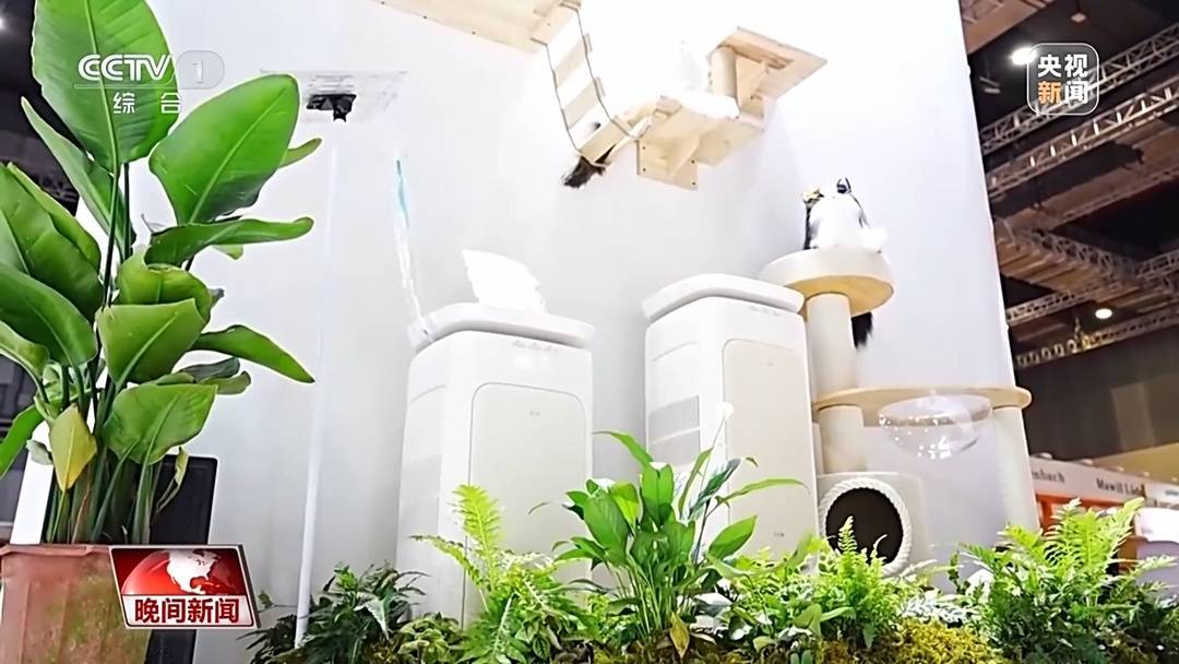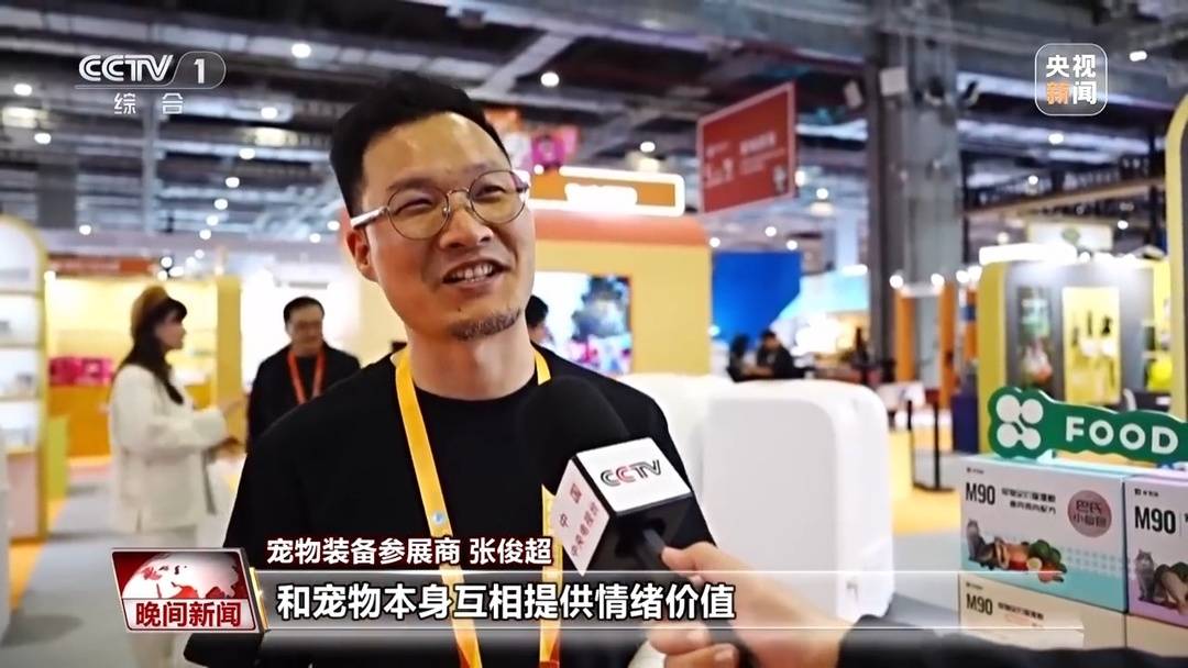 宠物装备参展商张俊超:饮水机、喂食器、猫厕所,有一个核心的共性,就是让你从日常养宠的繁重家务劳动里面解放出来。剩下的时间就只管养宠物,和宠物互相提供情绪价值。