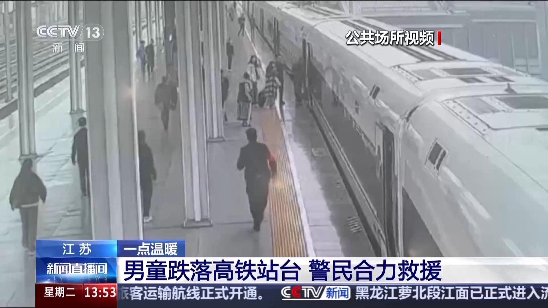 近日,江苏武进站发生惊险一幕。一名一岁半的男童在高铁站上车时,不慎从车厢连接处的缝隙跌落到站台下方。危急时刻,乘警、列车长和热心旅客联手,展开了一场火速救援。