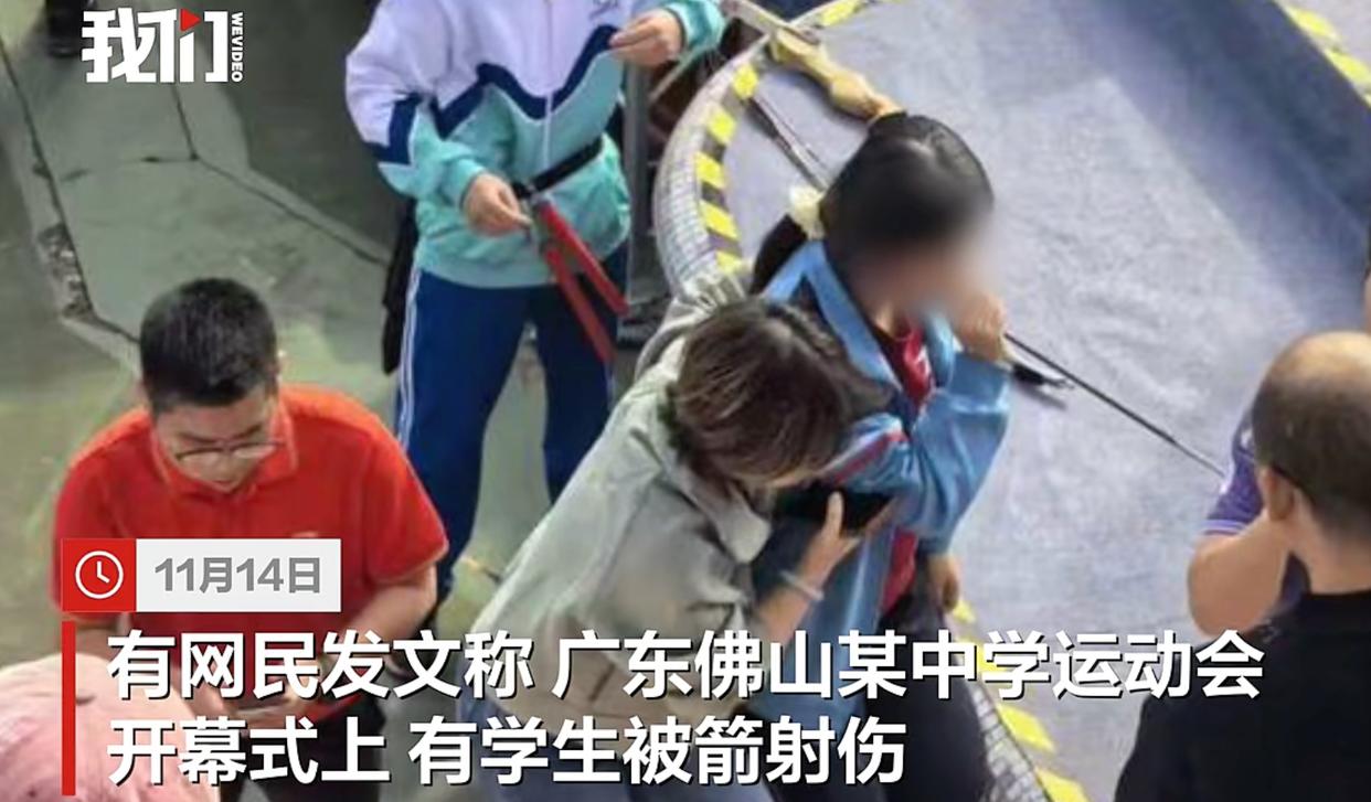 据新京报报道,11月14日,有网民发文称,广东佛山某中学运动会开幕式上,有学生被箭射伤。