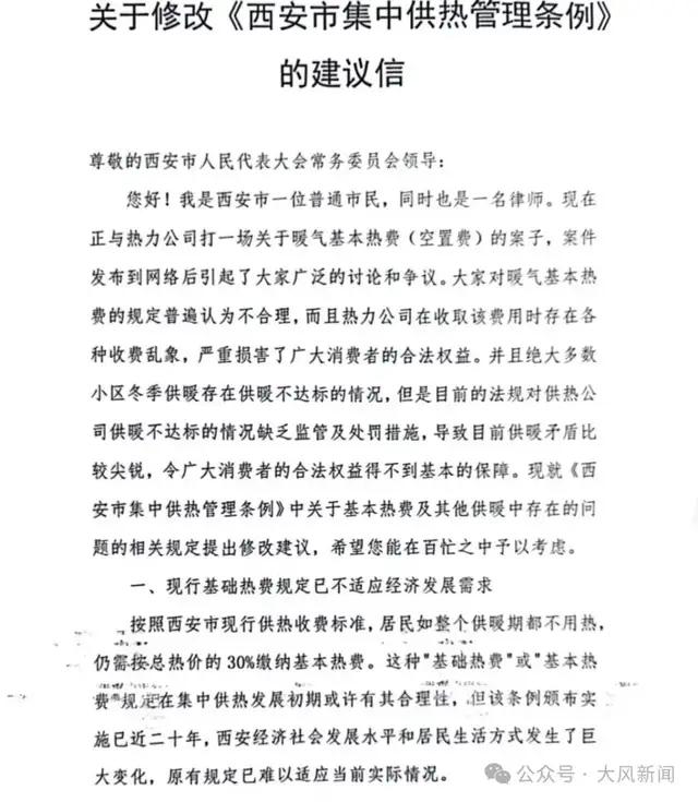 法院判决悬而未决,关于基本热费收取的讨论却日渐激烈。尽管供热条例修改的可能性渺茫,王停勇仍向西安市人大常委会提交了关于修改《西安市集中供热管理条例》的建议信。