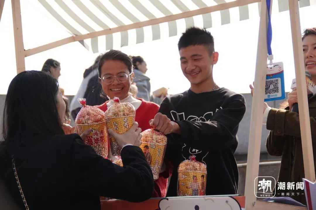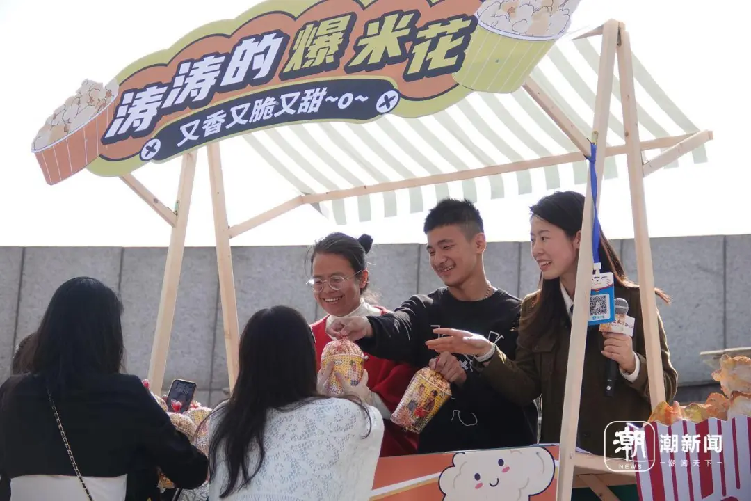 脑瘫少年涛涛制作的100桶爆米花被现场观众热情抢购,观众排起队,一人就买好几桶。