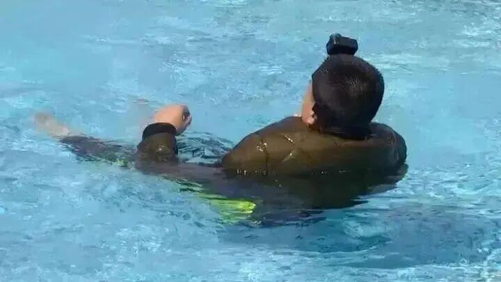 如果羽绒服吸水能力好,落水后的漂浮效果会更差,下面的这位消防员,在穿着羽绒服落水后约12秒,就被拉上了岸。