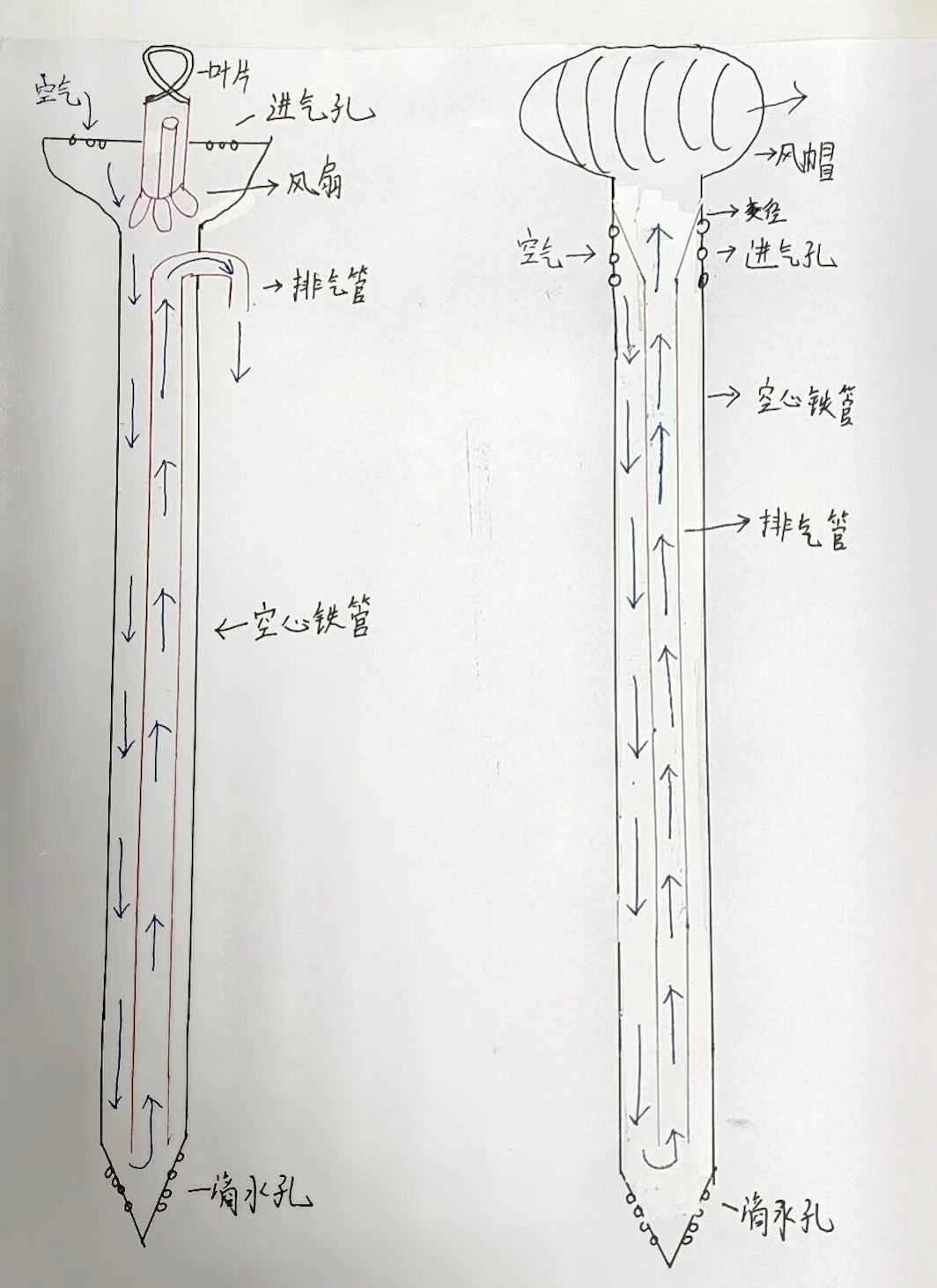 将空气导流至钢管底部