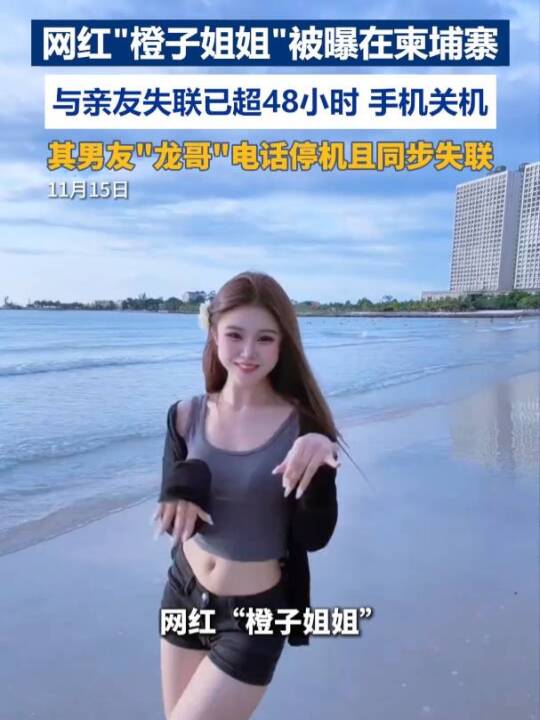 日前,网红“橙子姐姐”在柬埔寨失联超48小时,其姐姐哭诉她12号开始与亲友失联。其称,“橙子姐姐”原计划13号从柬埔寨飞回中国,至今未归。