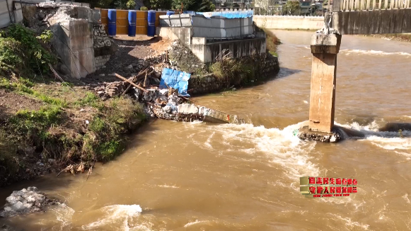 当地村民:垮了好久了,有三个月了,涨洪水把桥的地基冲垮了。