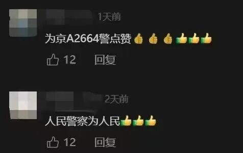 视频经由媒体发到网上后,网友在评论区纷纷留言:“大北京警察绝对可以信赖”“人民警察为人民”“给北京警察点赞”。同时,网友也在相互转发,全网寻找这辆警车。