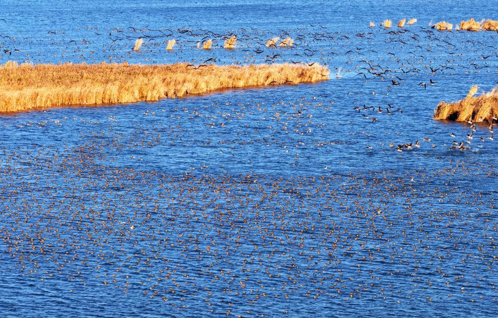 图为河北衡水湖国家级自然保护区的候鸟。新华社发(周津 摄)据悉,作为华北平原上罕有的完整湿地生态系统,衡水湖国家级自然保护区是候鸟迁徙路线的重要节点。目前,衡水湖已记录鸟类336种,其中包括国家一级保护动物21种。