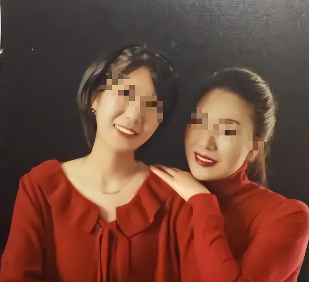头发有些花白的王女士带着母女合影出庭