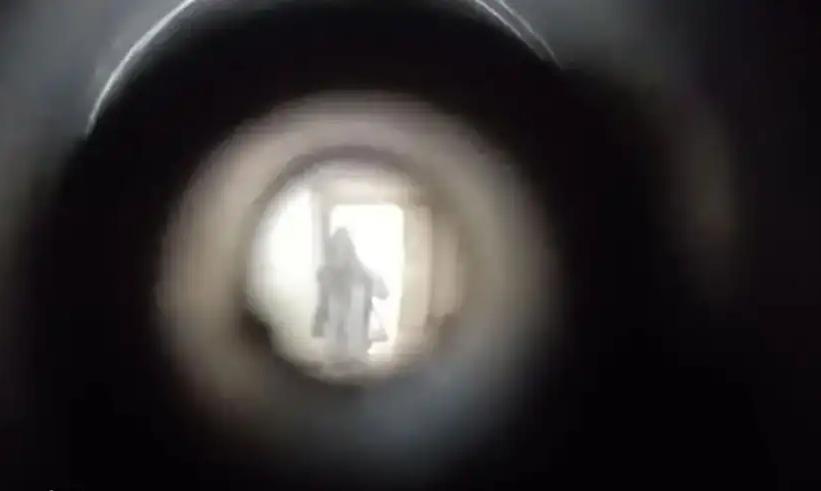 事发现场,嫌疑人门上猫眼所见