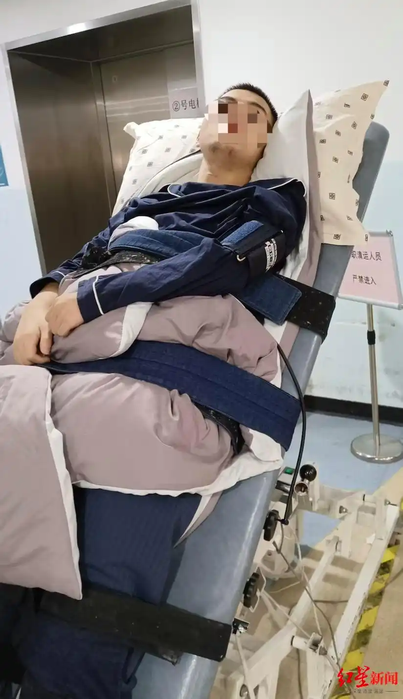 2023年10月19日~24日,王辉在上海长海医院做开刀治疗。病历显示,王辉椎体双侧多根骨折,除双上肢近端肌力3级、握力2级外,双下肢各肌块均为“0级”。