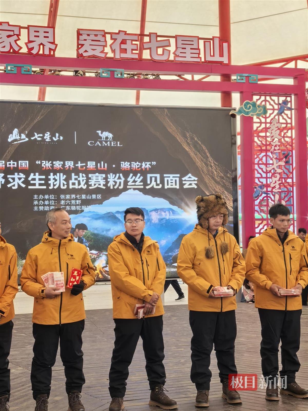 11月21日上午,张家界七星山景区举办荒野求生粉丝见面会。晋级决赛的“林北”“文车车”“熊二”“老中医”等选手热情与粉丝互动。活动最后为颁奖环节,工作人员给14名晋级决赛的选手,每人发放了3.2万元的现金和价值数万元的大礼包。
