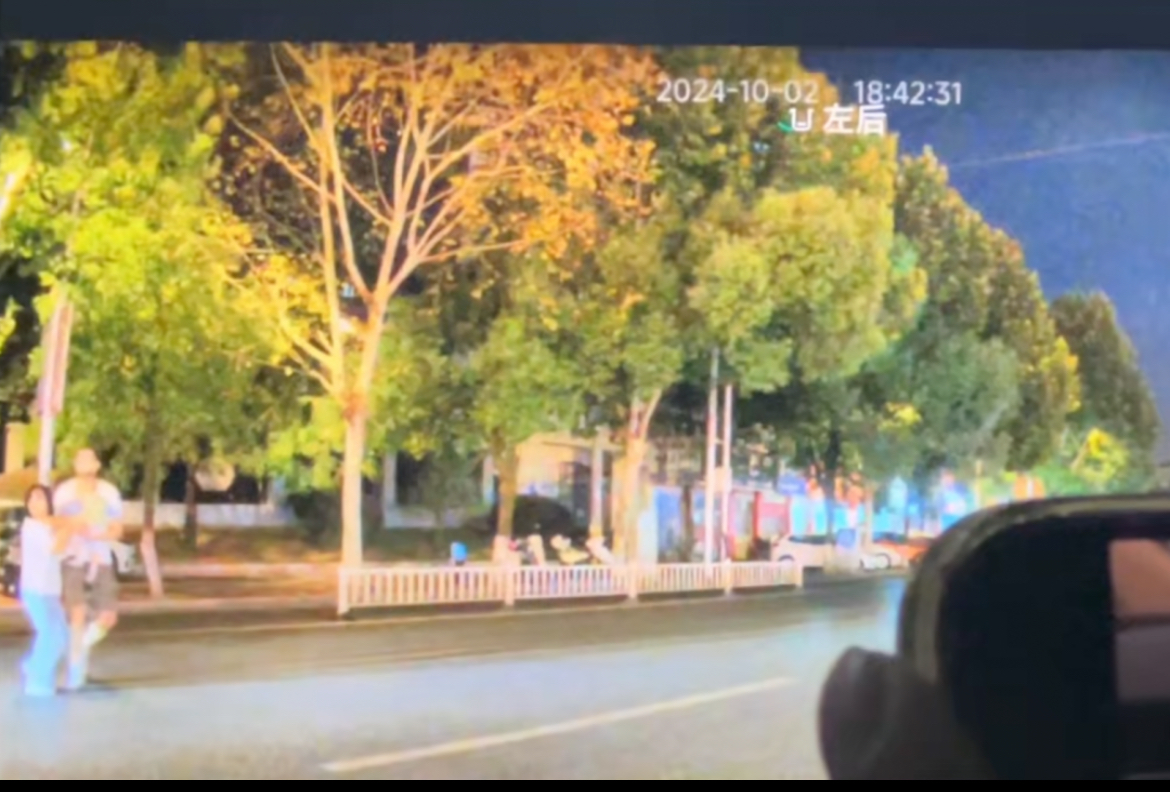 一家三口被撞前一刻。网络截图。
