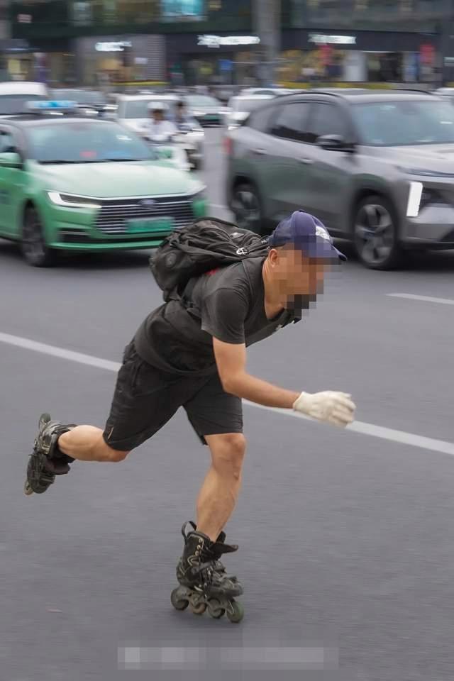 11月19日下午,在西安长安南路八里村段,一名男子穿着轮滑鞋在快车道上穿行,立即引起大家关注,被网友戏称为西安“酷冰侠”,同时轮滑鞋上路的危害也引起网友讨论。