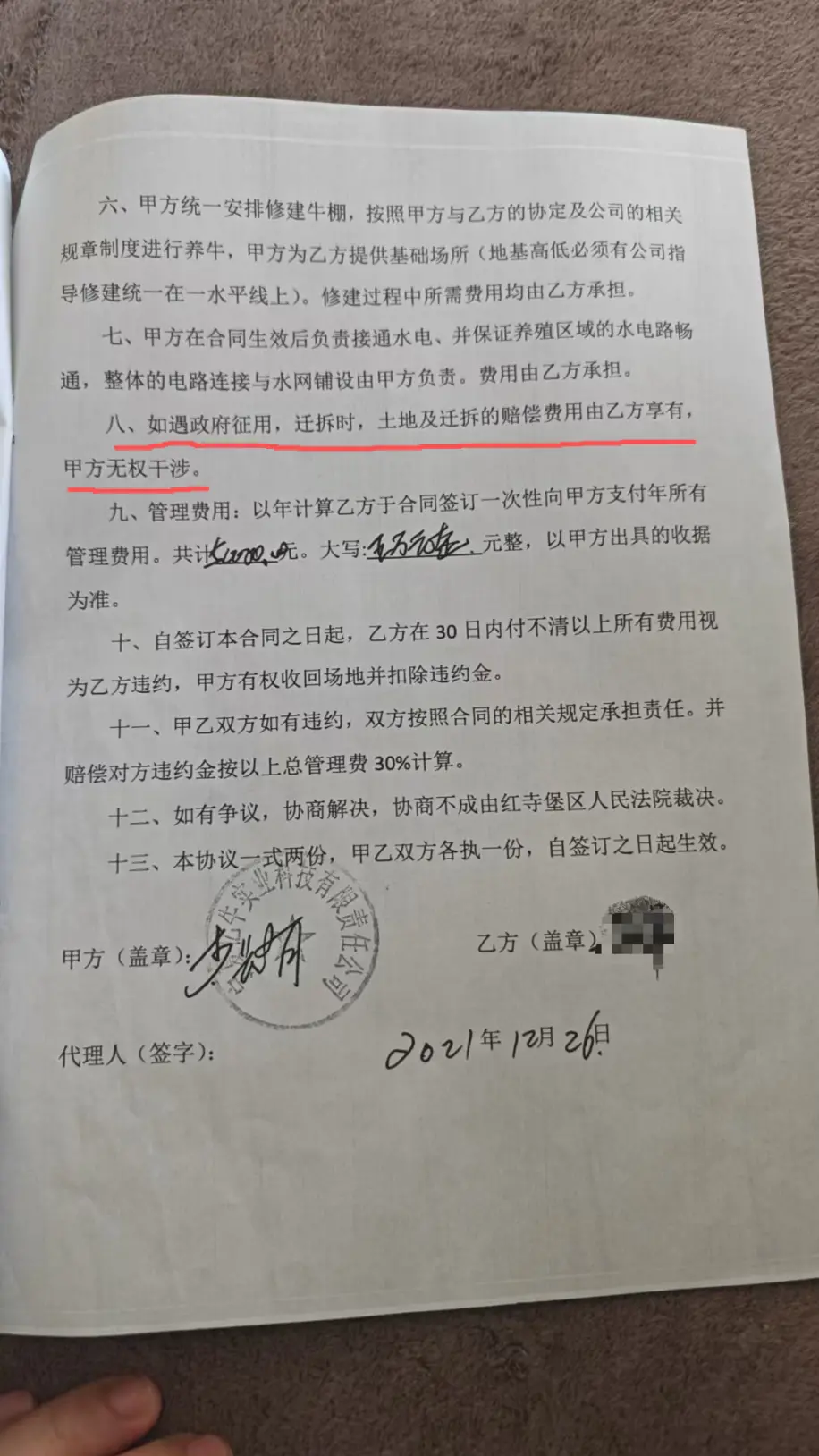 举报人称,有的人签协议根本就不是为了养牛,而是看中了协议中的一个条款:“如遇政府征用,拆迁时,土地及拆迁的赔偿费用由乙方(养殖户)享有,甲方(亿牛公司)无权干涉”。这也导致目前养殖园区内的养殖户只有几户,牛的存栏数也不超过500头,绝大部分养殖园区内的土地都已闲置多年,有的满是荒草的土地也被分割“转包”了。