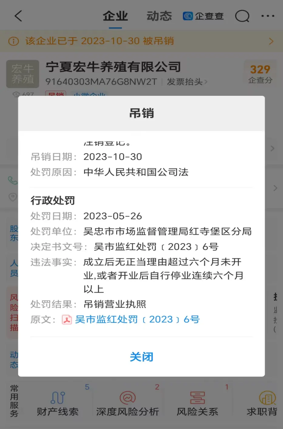 在养殖园区,指尖新闻记者没有找到亿牛公司的法人李长有,通过电话和短信与他联系,也没有得到回应。通过“企查查”查询,宁夏宏牛养殖公司成立于2019年,法定代表人与亿牛公司相同,都是李长有。但宏牛公司已于2023年10月30日被吊销执照,理由是“成立后无正当理由超过六个月未开业,或者开业后自行停业连续六个月以上”。