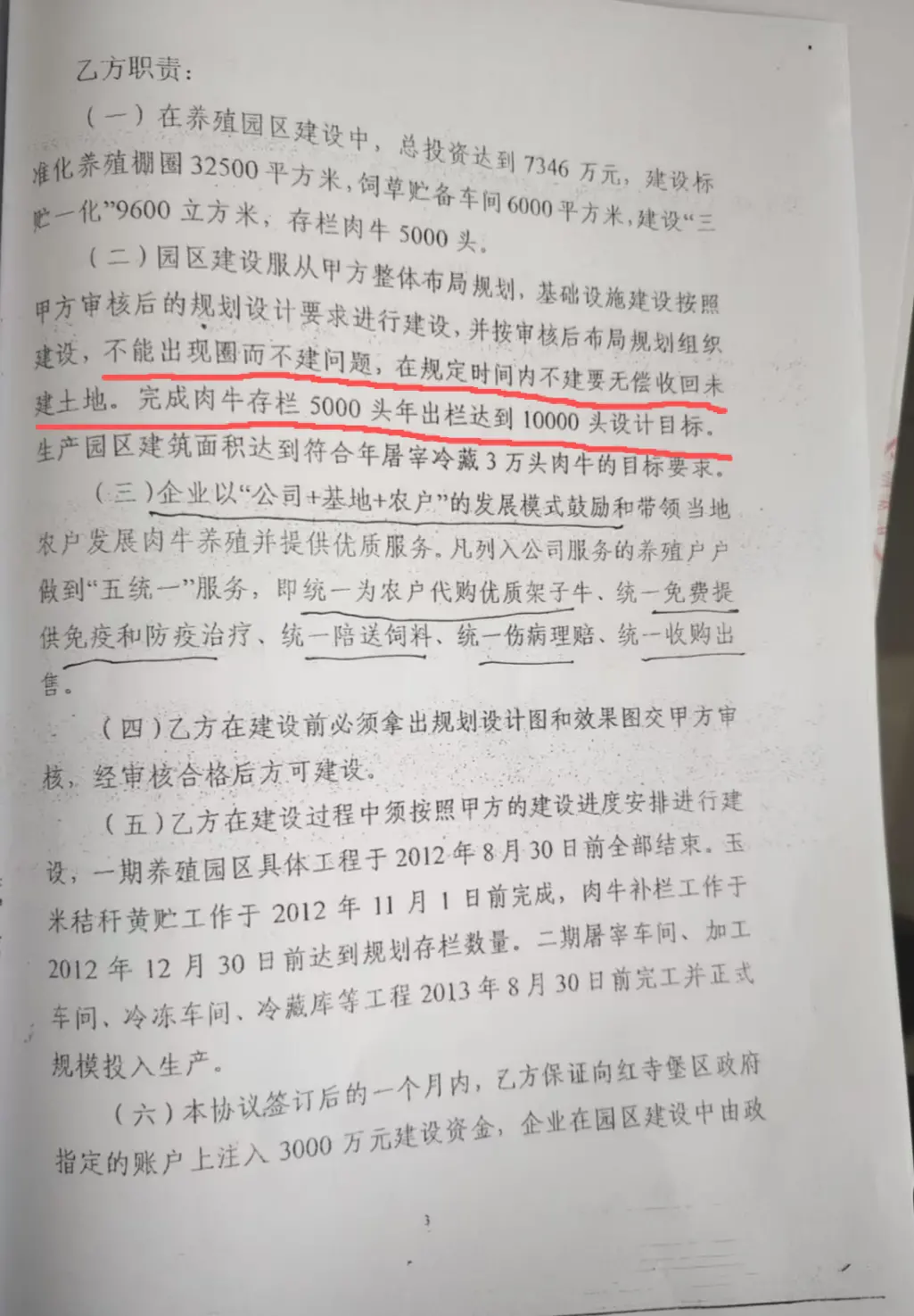 但《合作协议》签署后,亿牛公司并没有按照协议在规定时间内完成养殖园内规划牛棚的工程建设,但却以承包牛棚或提供牛棚合作经营的模式与养殖户签订协议,并收取几万元到100万元不等的承包费或管理费。