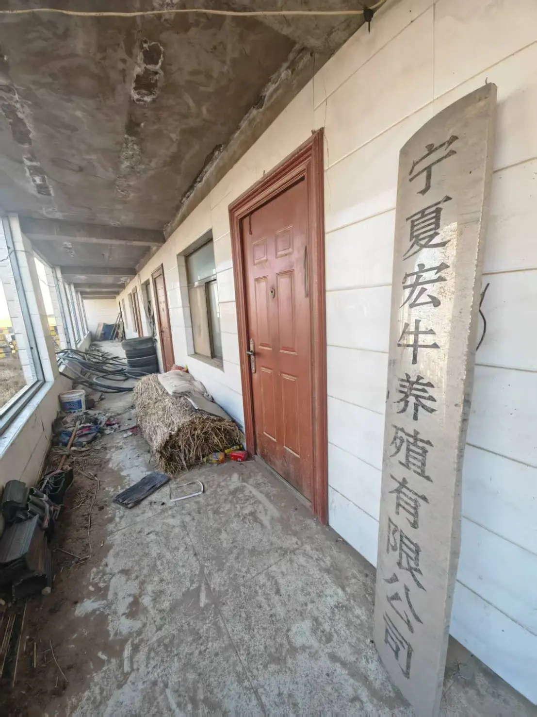 在亿牛公司的办公区,指尖新闻记者看到那里似乎已经闲置了很久,很多破败的门窗都没有修复,到处都是杂物和垃圾。投诉人扶起一块落满灰尘的牌子告诉记者,亿牛公司曾改名宁夏宏牛养殖有限公司(以下称宏牛公司),而且还用宏牛公司的名义从当地农业农村局拿到了“补贴”,据他了解宏牛公司一头牛都没有,他怀疑“宏牛公司”是用了不法手段骗取了国家补贴。