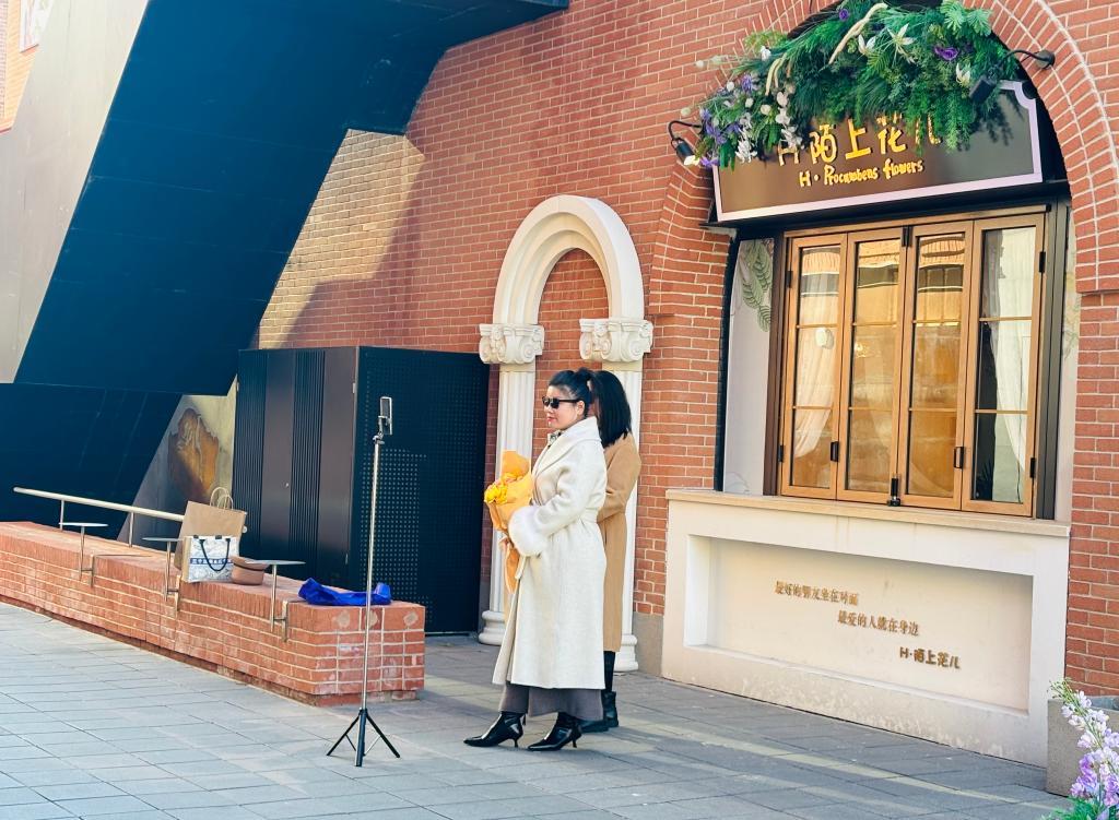 11月21日,游客在天美艺术街区内直播。新华社记者 周润健 摄