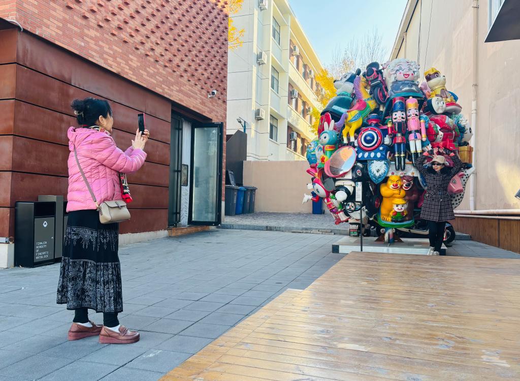 “艺术教育不应该被围墙阻隔。学生们以街区为画布开展‘在地艺术创作’,用装置艺术激活闲置角落,装点斑驳墙面,让艺术从封闭的展厅走向开放的日常,使街区成为流动的艺术实验室。”天津美术学院院长邱志杰说。