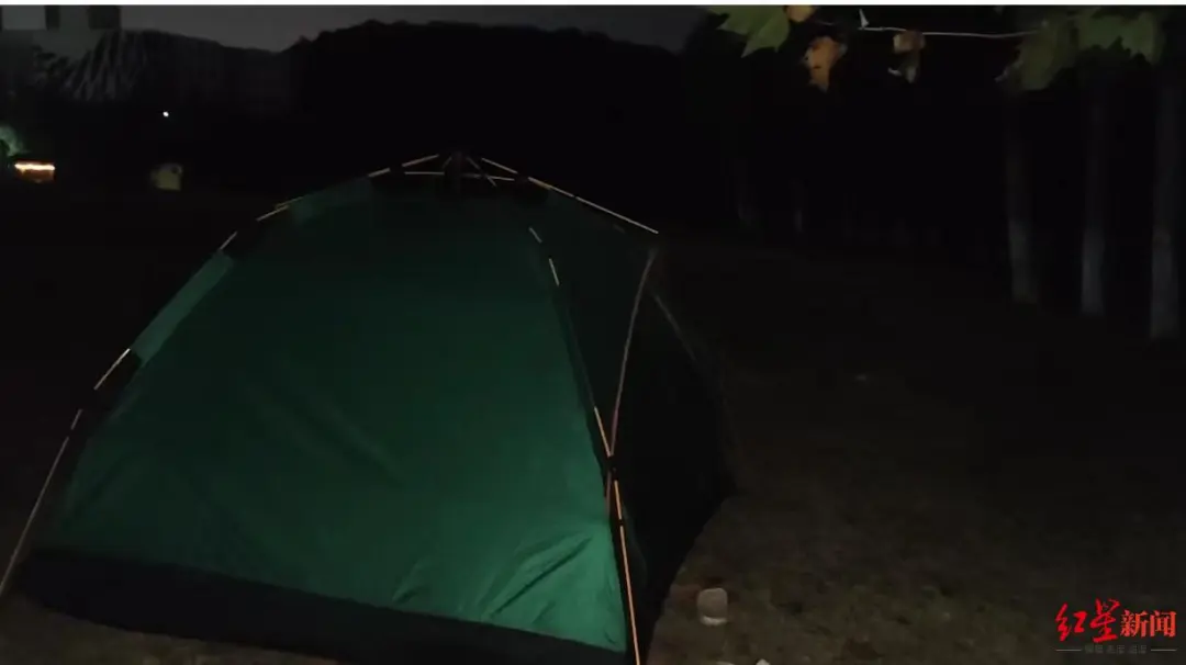 他睡帐篷,自己做饭。帐篷搭在城郊的露营基地,“可以洗澡,充电也方便”。国庆节后游客离开了,开阔的草坪上就他一顶小帐篷。帐篷前放着折叠椅、煮饭的炉子、小方桌。晚上睡觉前,他独自坐在暗夜里刷视频,“复盘一下”白天的直播,或者只是发呆。