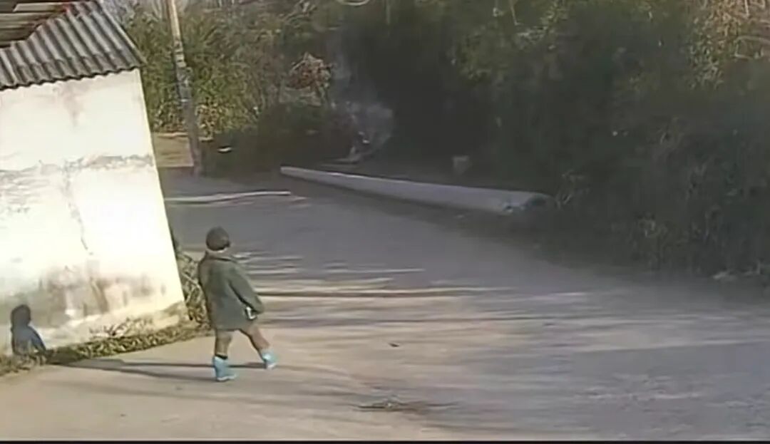 孙先生表示,耿某涵很可能是自己解开或者挣脱了绳索,然后自行离开了。孙先生邻居家的监控视频显示,16时06分,监控提醒,有人从邻居家门口经过。画面中,耿某涵脚上穿着雨靴,身上穿着灰色的棉衣,从房屋的拐角处经过。