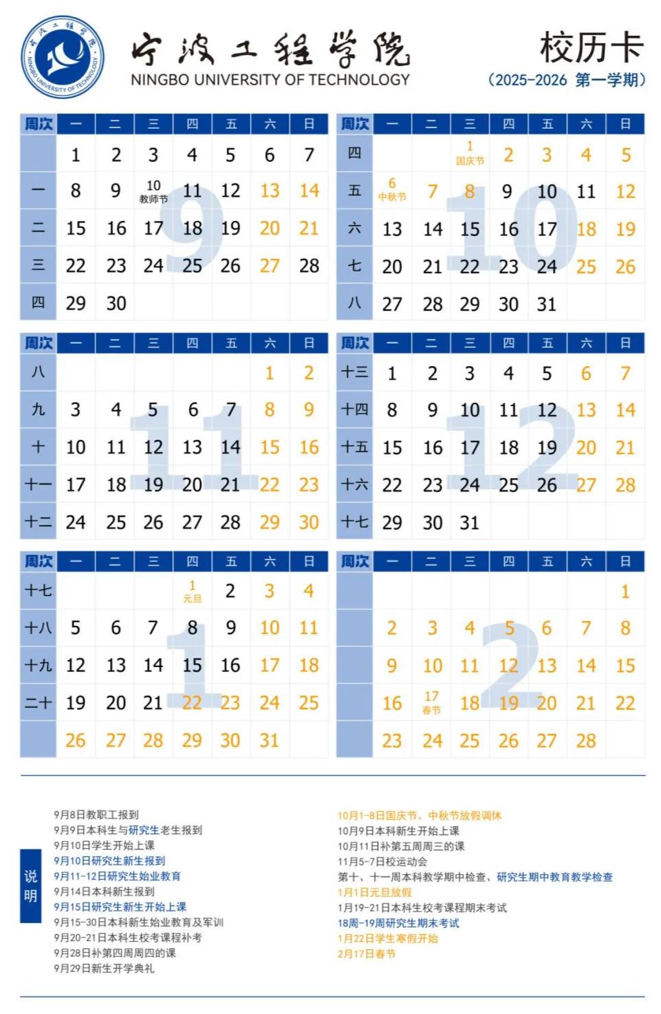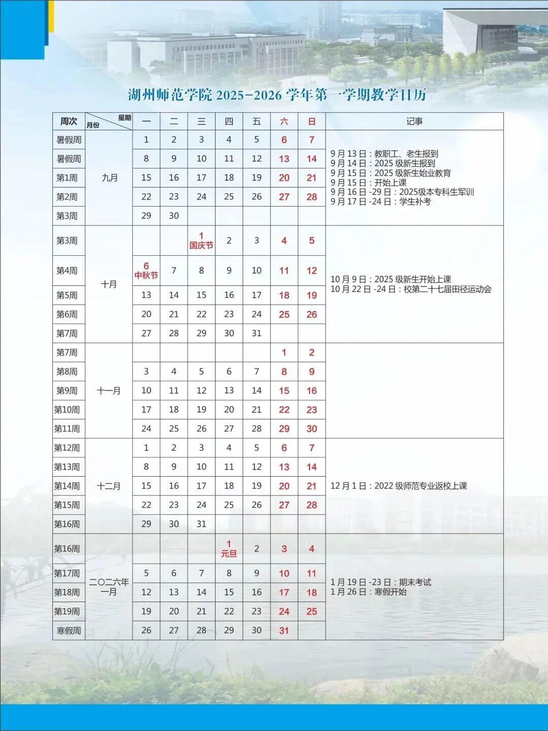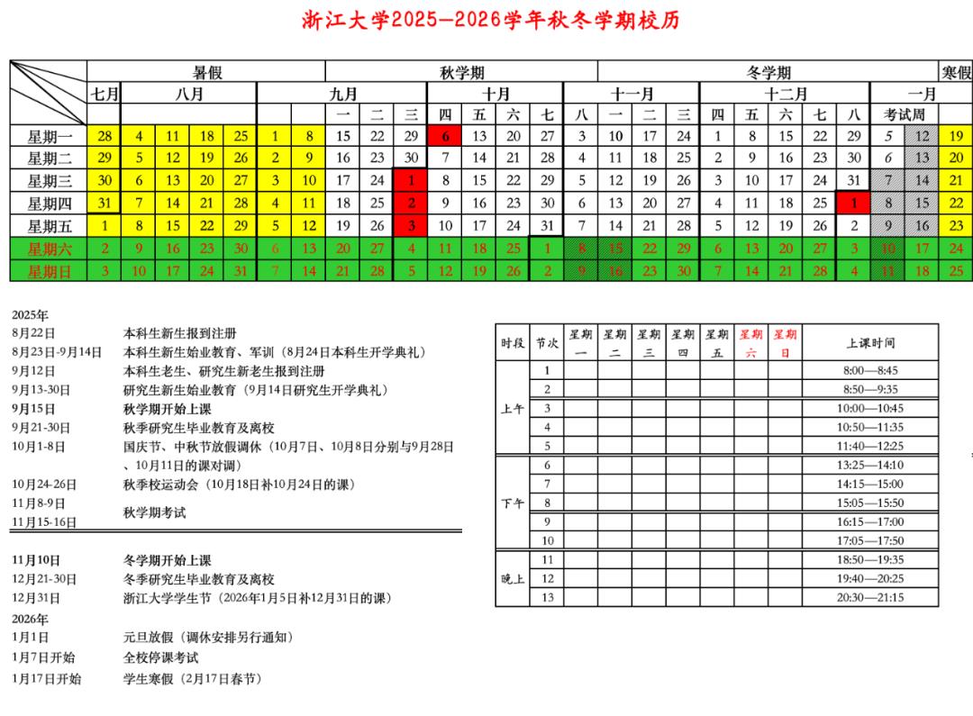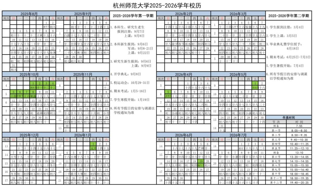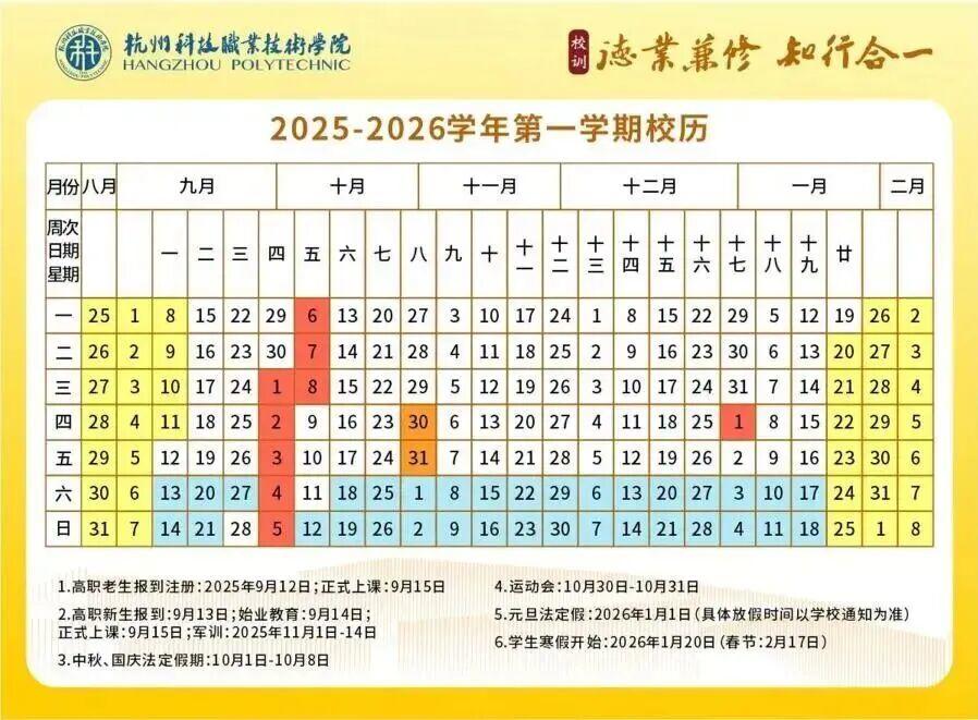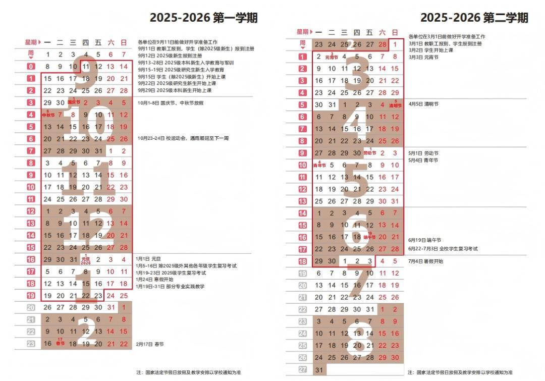 2025年秋季学期于8月31日报到注册,9月1日正式上课,至2026年2月6日结束,2月7日起放寒假。2026年春季学期于3月4日报到注册。