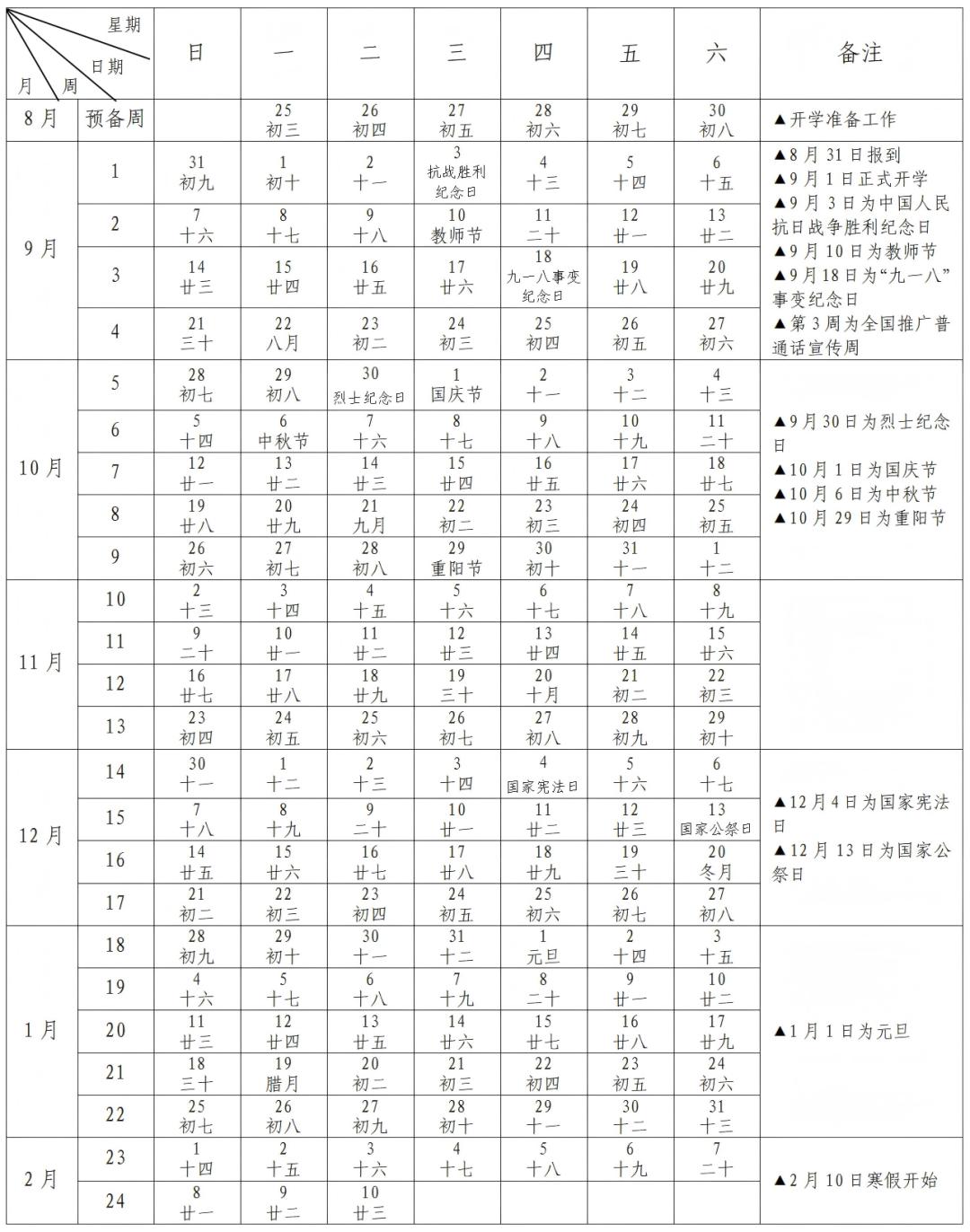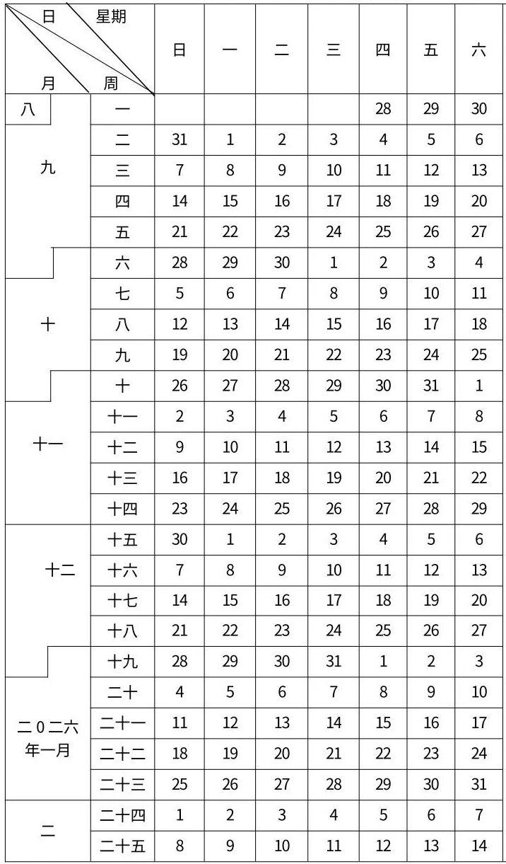 2025-2026学年第一学期,小学、初中、普高、中职(技工)定于2026年2月6日学期结束,2月7日放假,共二十三周。