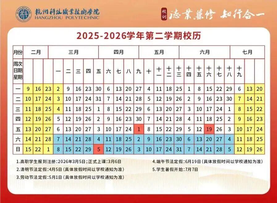 而2025年秋季学期于2026年2月6日结束,2月7日起放寒假。2026年春季学期于3月4日报到注册。寒假时间为25天。