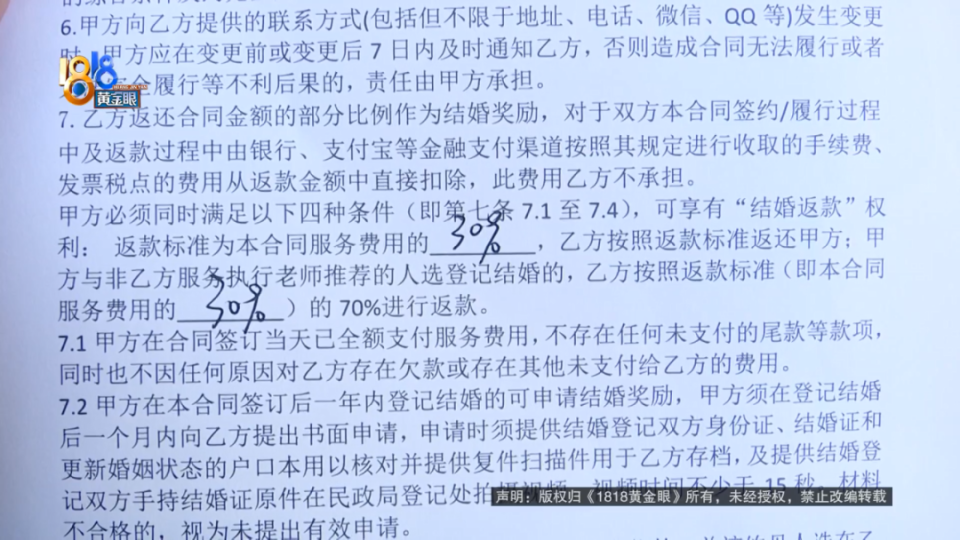 小金:对方说,我可以给你提供六个月的服务期,跟男方见面,至少保证有6个及以上男嘉宾。当时脑子上头嘛,就比较不理智、不清醒。