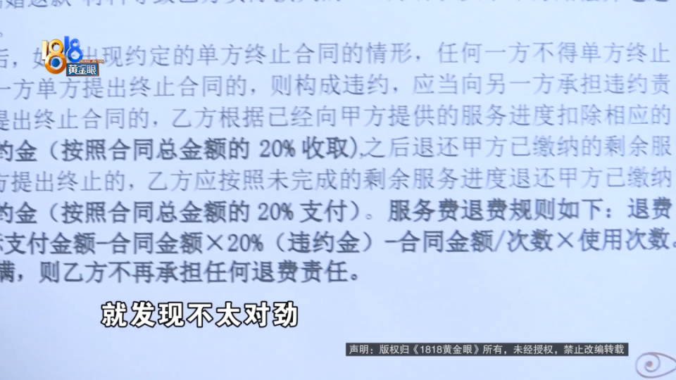 小金:后悔主要是有两个原因,一个是我马上要回老家工作上班,这边可能我不再需要这样的服务,而且我也没有进行任何服务资源的分享。第二个就是我觉得合同里有些霸王条款,当时也没有跟我仔细说这些情况,也没有说什么违约金,从来没说过,这个是我可以保证的。