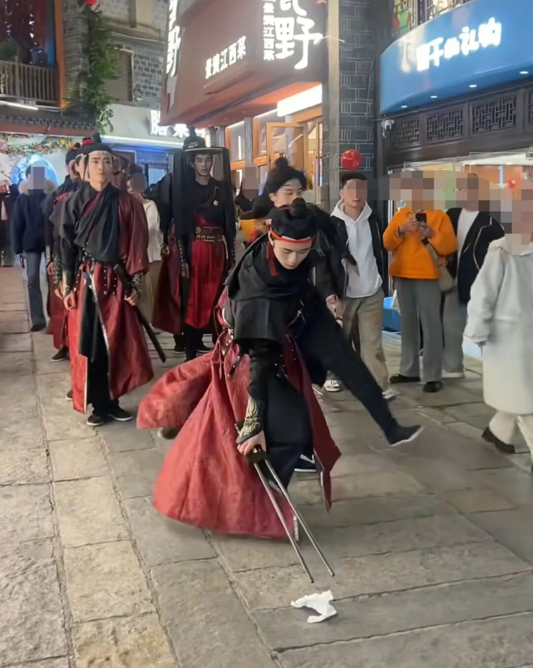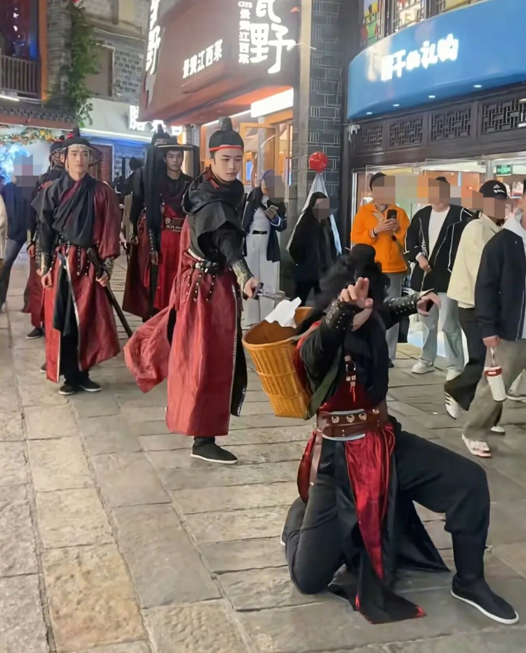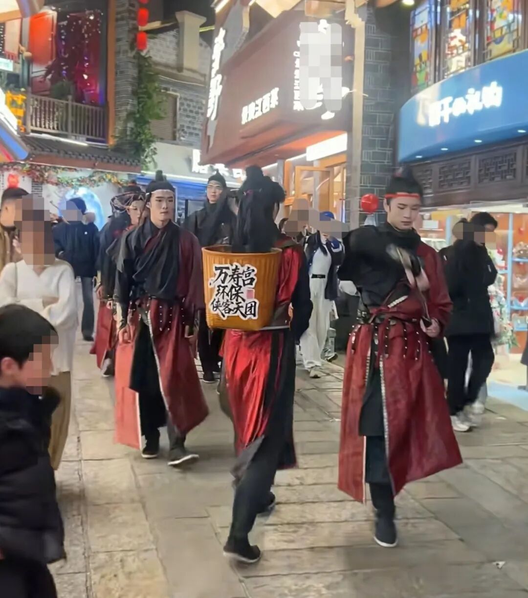 近日,不少到南昌万寿宫历史文化街区游玩的游客关注到,一群身着古装的年轻人,背着音箱自带BGM,在古街中穿梭,遇到地上有垃圾时,会以优美又浮夸的动作将垃圾拾捡至随身携带的竹筐中,筐上贴着“万寿宫环保侠客天团”的字样,路人纷纷驻足拍照、拍视频。