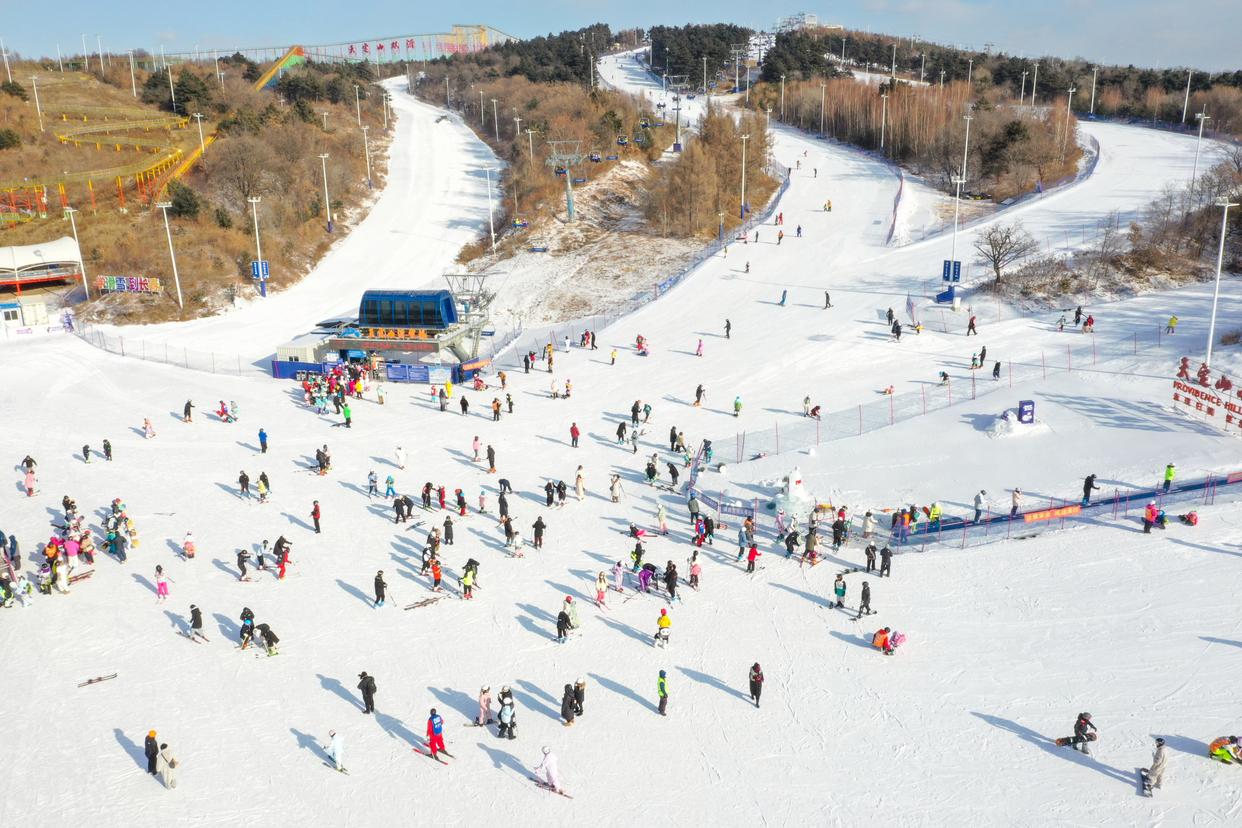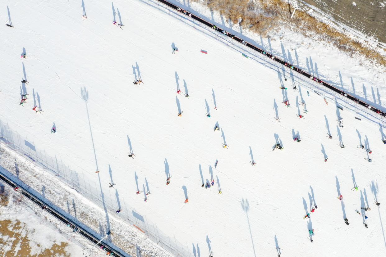 12月3日,学生和家长们在长春市天定山滑雪场滑雪(无人机照片)。 新华社记者 张楠 摄