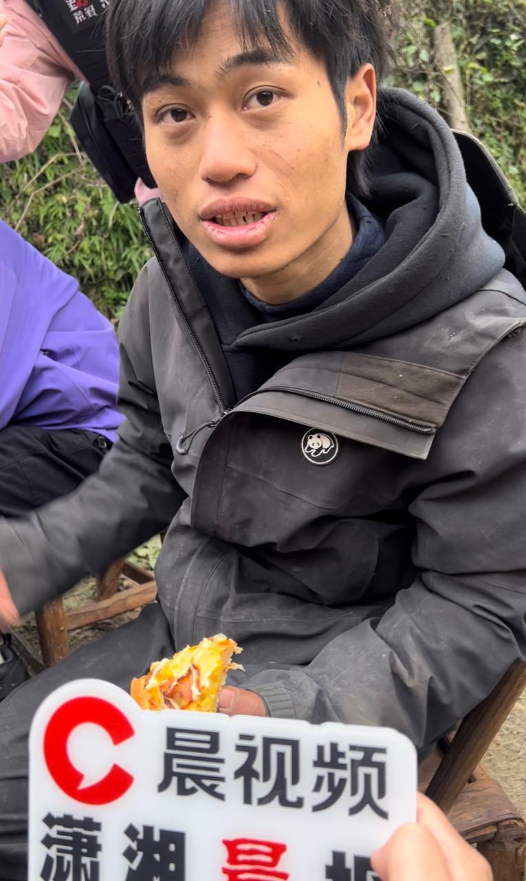 在工作人员的帐篷里,有剩下的披萨和炸虾外卖。工作人员热情递给他,他拿起炸虾,先放在鼻子前深深吸气,随后才放进嘴里:“这是什么人间美味,太香了,我要哭了。”还有已经冷掉的腊肉,文车车塞进嘴里,眼睛直眯成一条缝:“越嚼越香。”