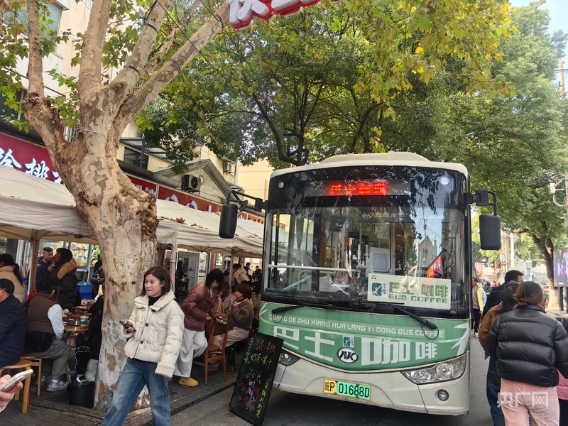 停靠在迎春街的咖啡巴士(央广网记者 张琳琳 摄)