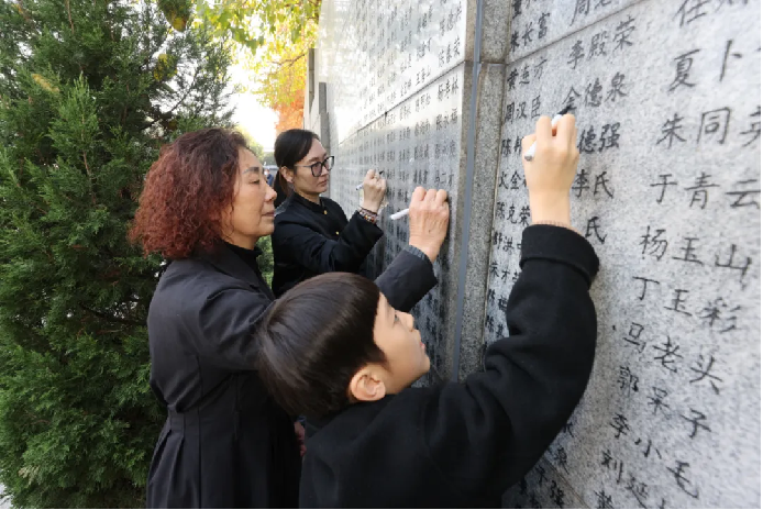 家祭活动结束时,已近中午。阳光倾泻而下,墙上那些刚刚被“描新”的名字显得格外清晰。