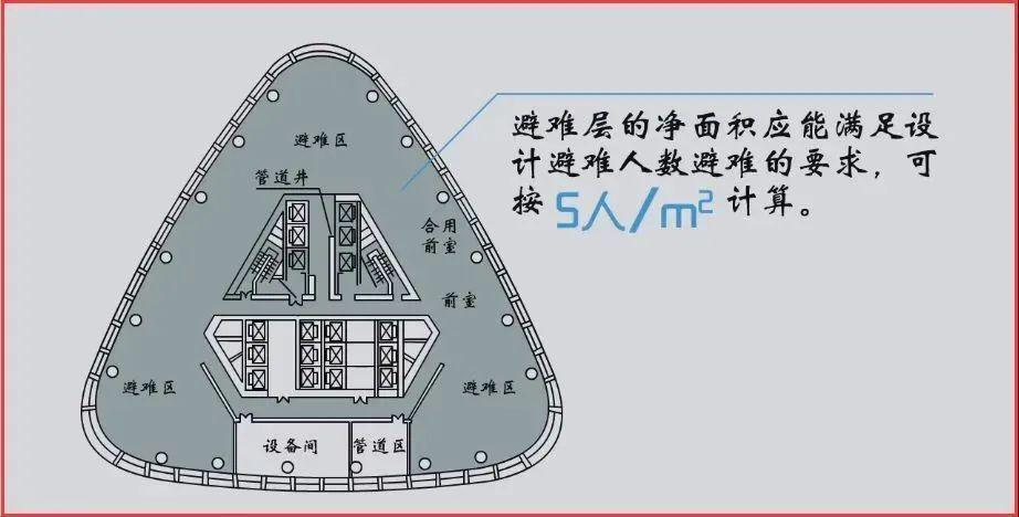 一般来说,避难层净面积是按照每平方米5人的要求设置的。这是标准是很人性化的,是按照5人坐在地上计算的,毕竟站累了也能坐下来歇歇。