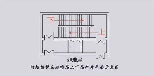 避难层的防烟楼梯会在避难层分隔、同层错位或上下层断开,人员均必须经避难层方能上下。比如说15层是避难层,从16楼走楼梯下来,没办法直接下到14楼,因为15楼的楼梯错开了,你必须进入避难层,可能要拐几个弯或者绕一圈,从错开的楼梯下去。