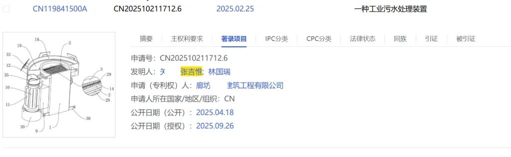 “一种工业污水处理装置”的申请(专利权)人系廊坊某建筑工程有限公司,发明人为关某;张吉惟;林国瑞。